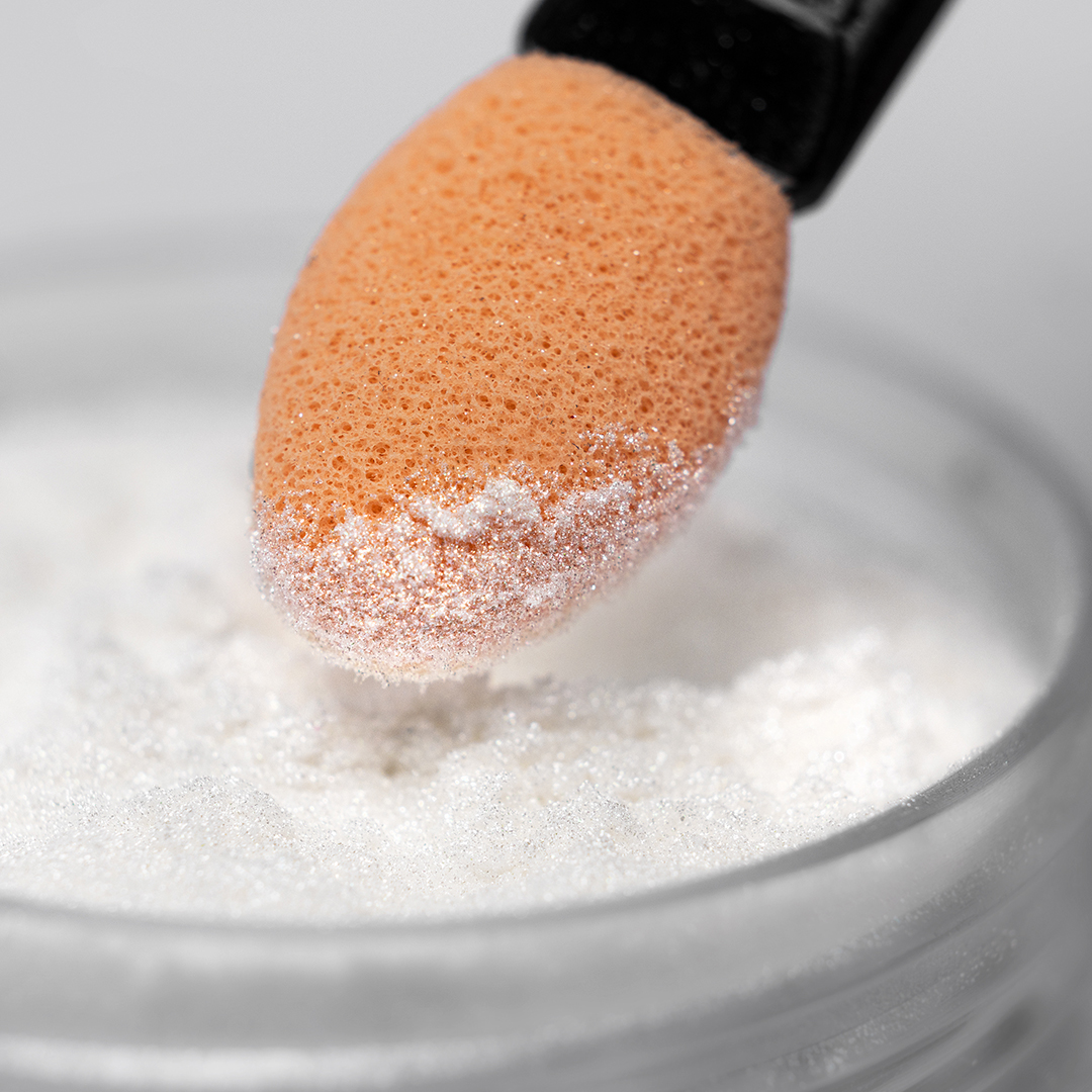 • Then immediately use the included applicator brush to apply the pearl powder onto your freshly-cured manicure.